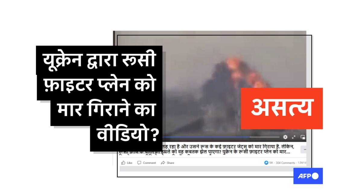 फ़ेसबुक पर 24 फ़रवरी, 2022 को शेयर किए गए फ़ुटेज के कैप्शन में लिखा है, "यूक्रेन द्वारा एक रूसी जेट को मार गिराने का यह वीडियो उनकी बहादुरी का उदाहरण है".