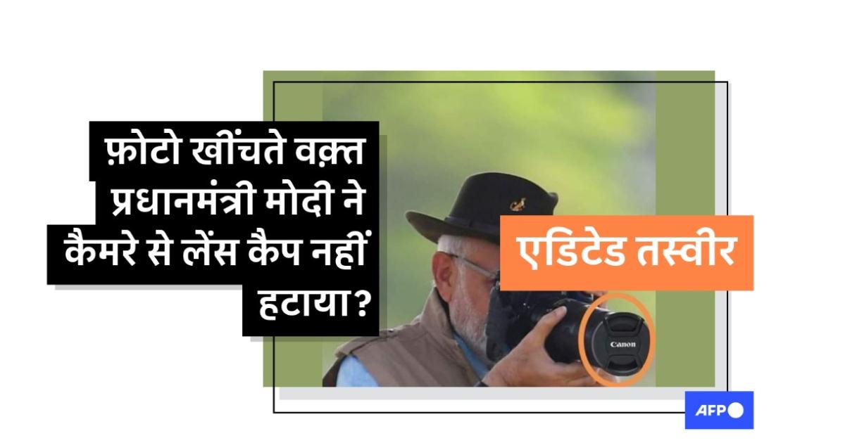 असल तस्वीर में मोदी के हाथ में दिख रहे कैमरे पर कोई लेंस कैप नहीं है.