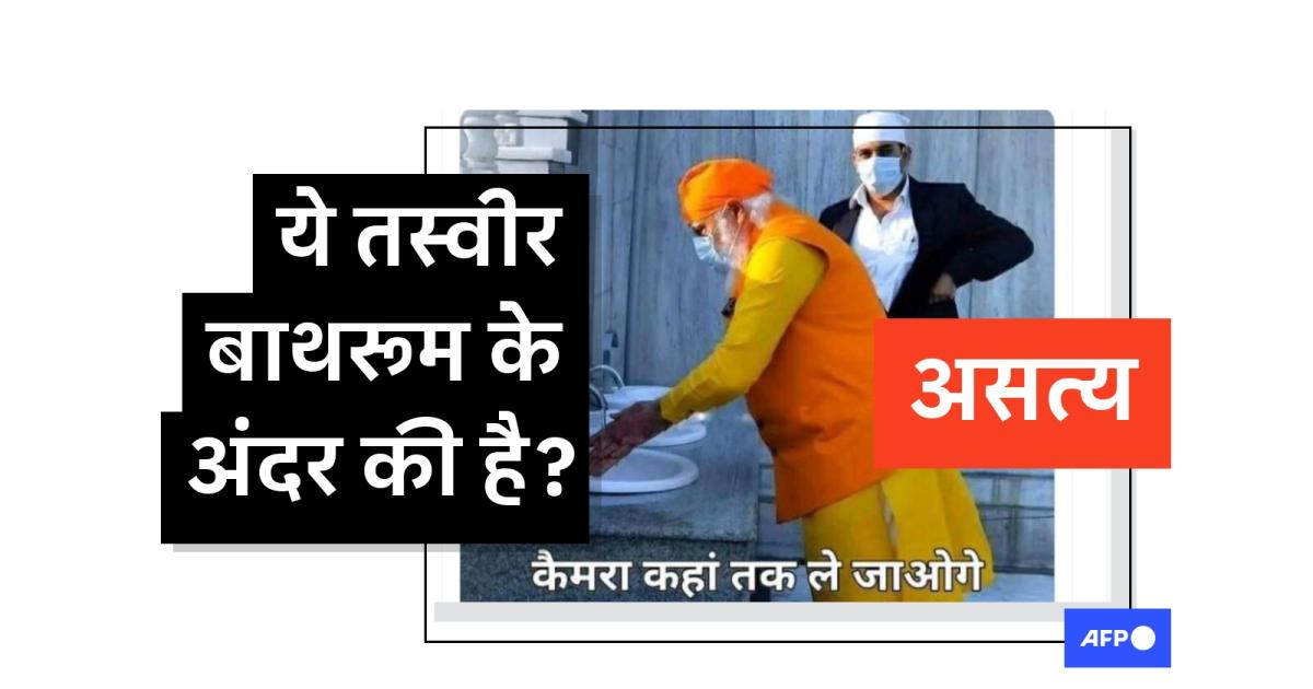गुरूद्वारे के प्रवेश द्वार पर AFP के एक पत्रकार द्वारा ली गई वॉशबेसिन की एक तस्वीर में मोदी की तस्वीर के समान ही विशेषताएं दिखाई देती हैं: