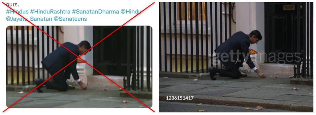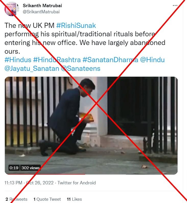 कैप्शन में लिखा गया है, “नए यूके पीएम अपने कार्यालय में प्रवेश से पहले परंपरागत तरीके से रिवाज़ निभाते हुए. हमने अपनी परंपरा लगभग छोड़ दी है. #हिन्दू.”