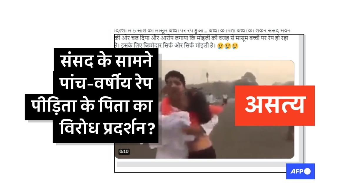 एक ट्विटर यूज़र ने 2 मई, 2023 को वीडियो शेयर करते हुए लिखा, “दिल्ली में 5 साल की मासूम बच्ची पर रेप हुआ... बच्ची के पिता बच्ची को लेकर संसद भवन की ओर चल दिया और आरोप लगाया कि मोइली की वजह से मासूम बच्ची पर रेप हो रहा है। इसके लिए जिम्मेदार सिर्फ और सिर्फ मोइली है.”