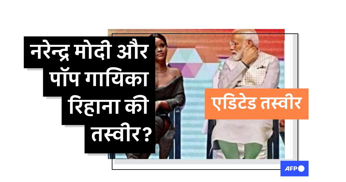 गायिका रिहाना के साथ सोशल मीडिया पोस्ट में शेयर की जा रही नरेन्द्र मोदी की ये तस्वीर एडिटेड है