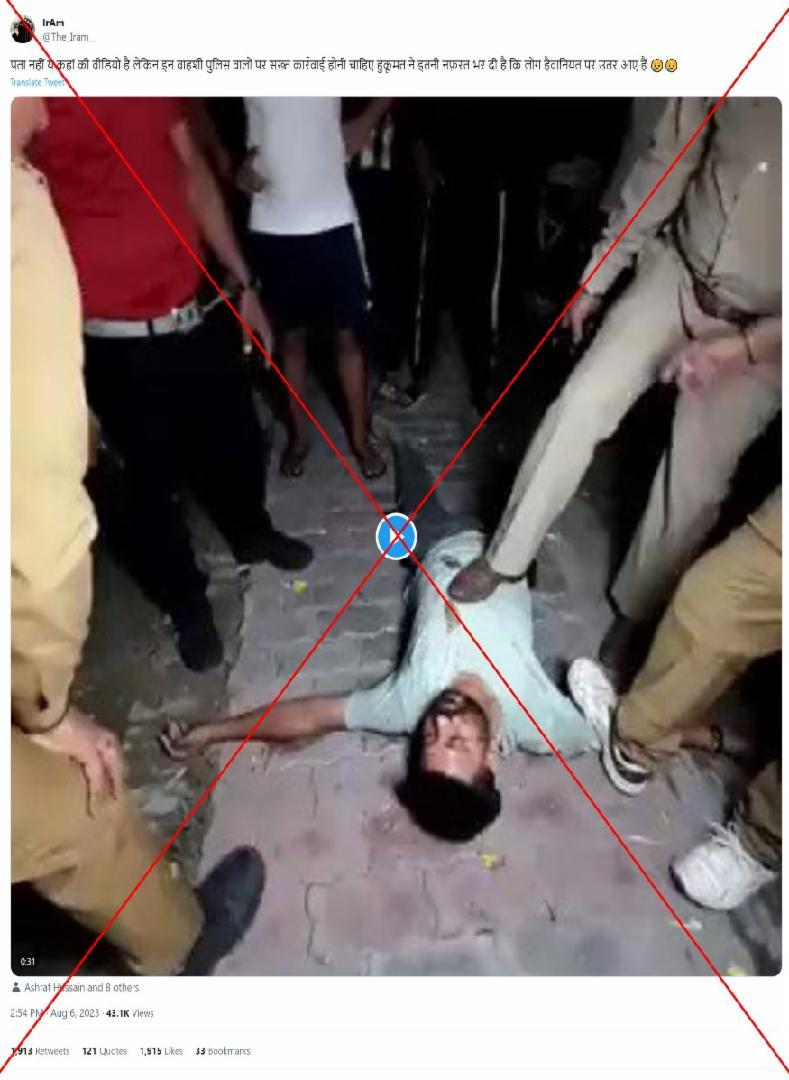 एक यूज़र ने 6 अगस्त, 2023 को X पर यह वीडियो शेयर करते हुए लिखा, “पता नहीं ये कहां की वीडियो है लेकिन इन वाहशी पुलिस वालों पर सख्त कार्रवाई होनी चाहिए हुकूमत ने इतनी नफ़रत भर दी है कि लोग हैवानियत पर उतर आए हैं.” मालूम हो X पहले ट्विटर के नाम से जाना जाता था.