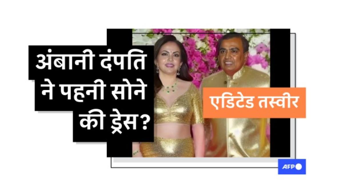 मुकेश और नीता अंबानी की गोल्डेन ड्रेस पहने एडिटेड तस्वीर गलत दावे से शेयर की गई