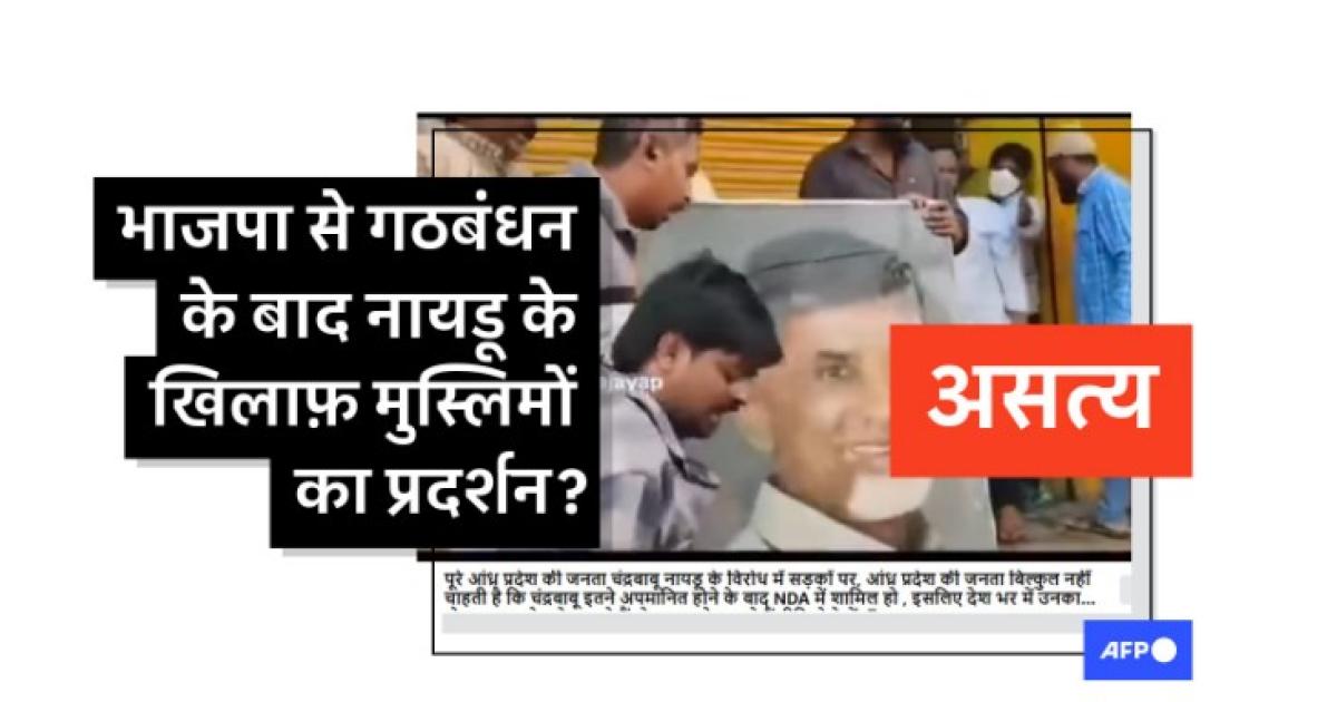 एएफ़पी को नायडू के भाजपा के साथ गठबंधन करने के बाद मुसलमानों द्वारा उनके खिलाफ़ विरोध प्रदर्शन की कोई विश्वसनीय न्यूज़ रिपोर्ट नहीं मिली है.