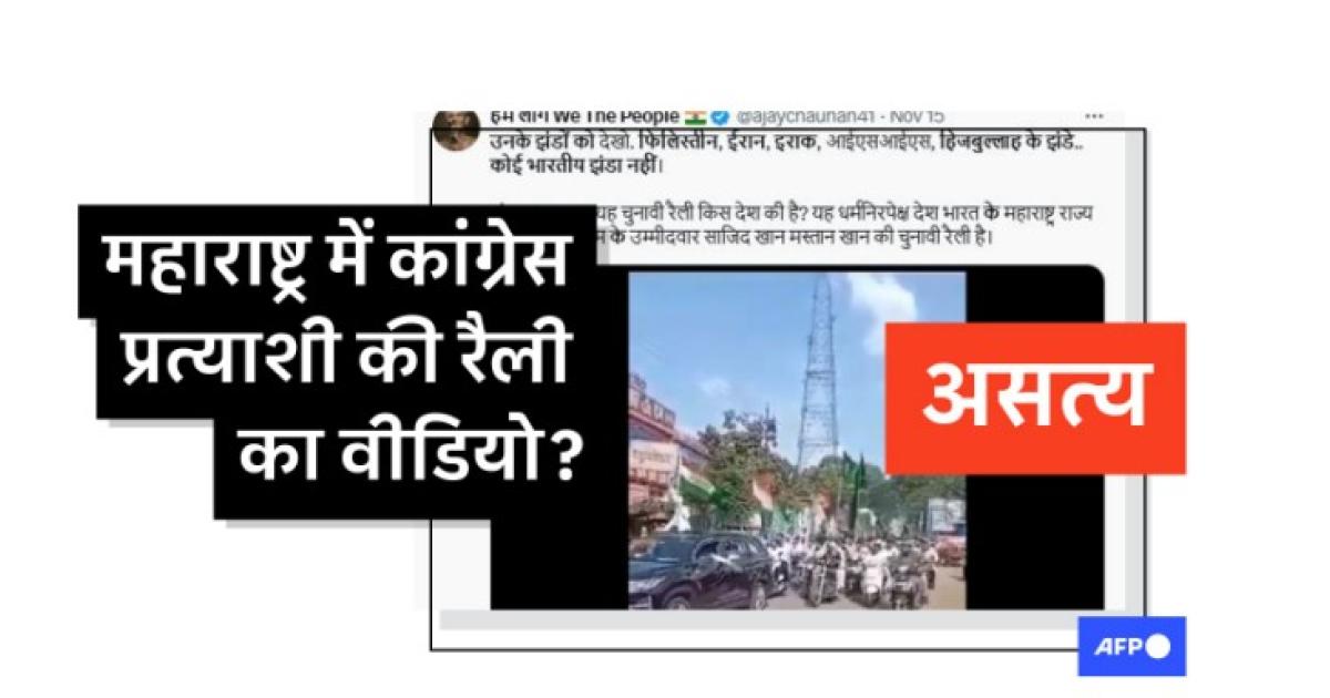 पोस्ट का कैप्शन है, "उनके झंडों को देखो. फिलिस्तीन, ईरान, इराक, आईएसआईएस, हिजबुल्लाह के झंडे.. कोई भारतीय झंडा नहीं. अंदाजा लगाइए यह चुनावी रैली किस देश की है? यह धर्मनिरपेक्ष देश भारत के महाराष्ट्र राज्य के अकोला पश्चिम के उम्मीदवार साजिद खान मस्तान खान की चुनावी रैली है."