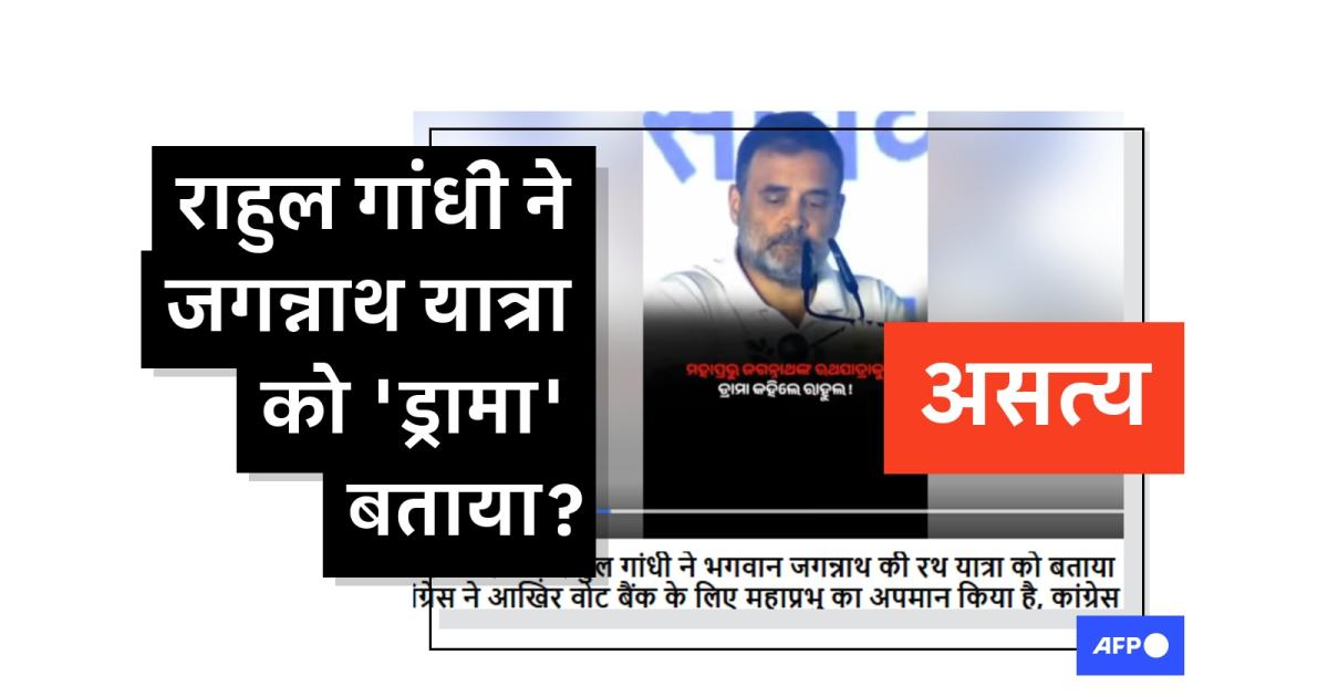 वीडियो में गांधी एक मंच पर खड़े होकर कह रहे हैं: "जब ओडिशा में जगन्नाथ यात्रा निकलती है, तो जगन्नाथ यात्रा का रथ निकलता है, लाखों लोग उसे देखते हैं और उसके पीछे चलते हैं और फिर एक ड्रामा होता है."