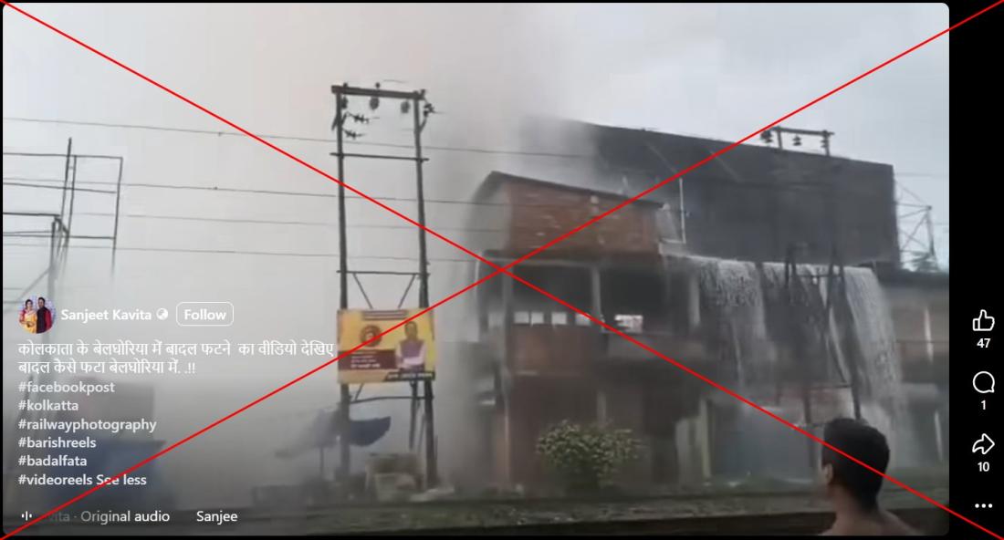 फ़ेसबुक पर एक यूज़र ने सितंबर 23, 2025 को वीडियो शेयर करते हुए लिखा, "कोलकाता के बेलघोरिया में बादल फटने का वीडियो देखिए."