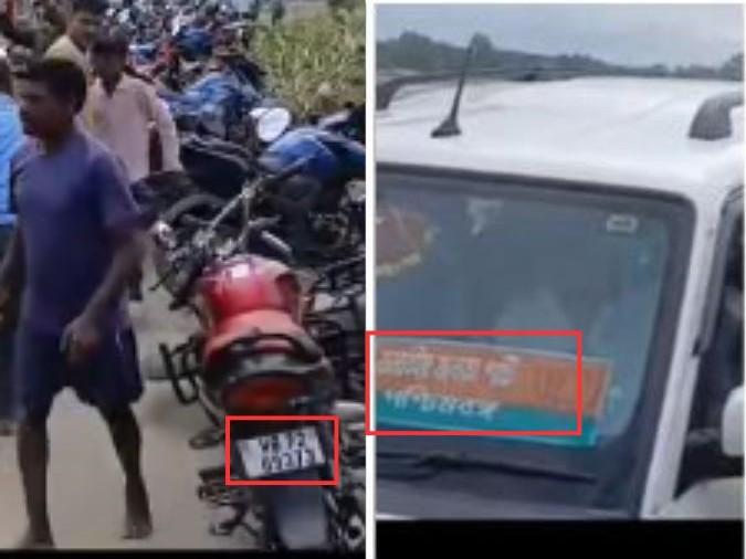 हमले में क्षतिग्रस्त गाड़ी पर स्टिकर दिखाई देता है जिसपर बंगाली में लिखा है -- "भारतीय जनता पार्टी पश्चिम बंगाल". वहीं सड़क किनारे खड़ी मोटरसाइकिलों पर लिखा कोड "WB 72" जलपाईगुड़ी में पंजीकृत वाहनों का परिवहन कोड है (आर्काइव्ड लिंक).