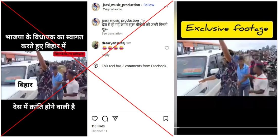 जैस- जैसे नवंबर में होने वाले बिहार विधानसभा चुनाव नज़दीक आते जा रहे हैं, सोशल मीडिया पर गलत सूचनाओं की बाढ़ आ गयी है. बिहार चुनाव से जोड़ते हुए एक वीडियो इस दावे के साथ शेयर हो रहा है कि जनता सत्तारूढ़ भारतीय जनता पार्टी (भाजपा) से नाराज़ है और भाजपा नेताओं पर हमले कर रही है. हालांकि, वीडियो वास्तव में पश्चिम बंगाल में हुई एक घटना का है.