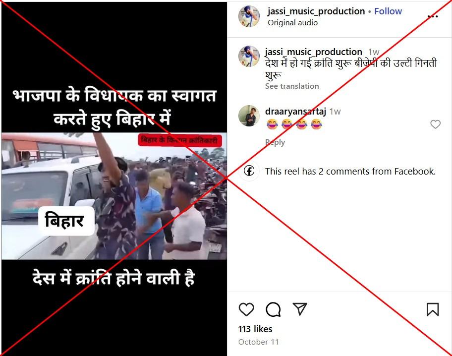 इंस्टाग्राम पर एक यूज़र ने अक्टूबर 11, 2025 को वीडियो पोस्ट करते हुए लिखा, "देश में हो गई क्रांति शुरू बीजेपी की उल्टी गिनती शुरू."
