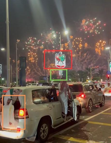 मिडिल ईस्ट पर रिपोर्टिंग कर रहे एक एएफ़पी पत्रकार द्वारा वीडियो के विश्लेषण से अन्य बातें भी सामने आईं -- जैसे कि एक कार पर देश के राष्ट्रपति शेख मोहम्मद बिन ज़ायद अल नाहयान की तस्वीर और लैंप पोस्ट पर नंबर "52" के ऊपर एक बाज़ का चिह्न (जो देश का प्रतीक है) -- जिनसे संकेत मिलता है कि वीडियो संयुक्त अरब अमीरात में फ़िल्माया गया था.