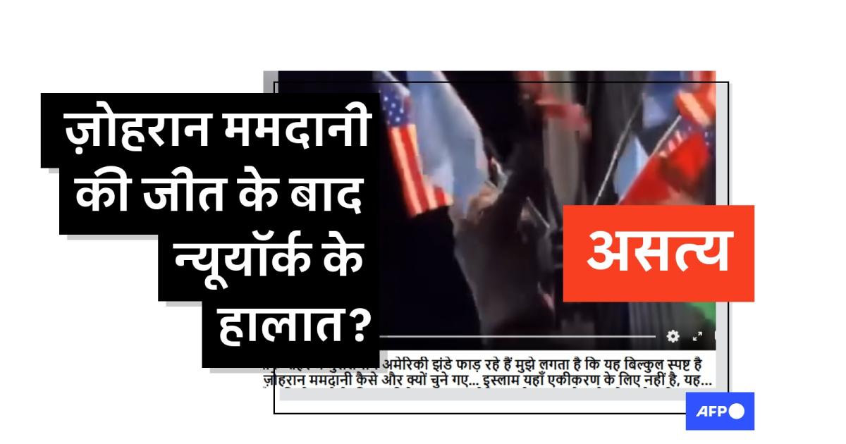डेमोक्रेटिक कैंडिडेट ज़ोहरान ममदानी के न्यूयॉर्क का मेयर चुने जाने के बाद से सोशल मीडिया पर एक पुराना वीडियो शेयर कर यह दावा किया गया है कि न्यूयॉर्क में मुसलमानों द्वारा अमेरिकी झंडा फाड़ा जा रहा है. हालांकि वीडियो वास्तव में नवंबर 2023 में अमेरिका में फ़िलिस्तीन-समर्थक विरोध प्रदर्शन के दौरान हुई घटना को दिखाता है.