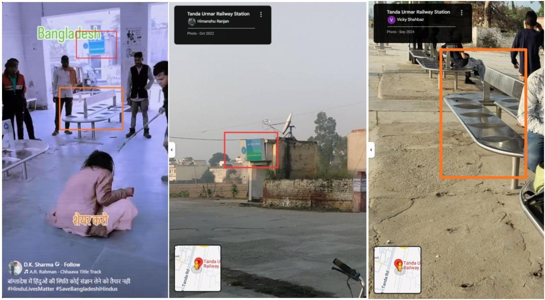 फ़ुटेज में दिख रहे दृश्य गूगल मैप्स पर अपलोडेड टांडा उड़मुड़ रेलवे स्टेशन की तस्वीरों से मेल खाते हैं (आर्काइव्ड लिंक).