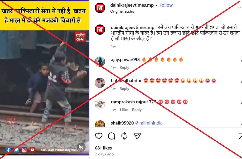 सोशल मीडिया पर एक वीडियो, जिसमें कुछ बच्चे प्लेटफ़ॉर्म पर खड़ी ट्रेन के कपलिंग से छेड़छाड़ करते दिख रहे हैं, इस गलत दावे से शेयर किया जा रहा है कि मुस्लिम बच्चे एक यात्री ट्रेन को नुकसान पहुंचा रहे हैं. जबकि वीडियो बनाने वाले व्यक्ति ने एएफ़पी को बताया कि यह फ़ुटेज बांग्लादेश की राजधानी ढाका में फ़िल्माया गया था और इसका भारत से कोई संबंध नहीं है.