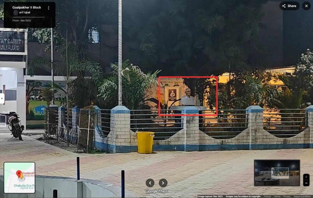 एएफ़पी को गूगल मैप्स पर चाकुलिया कार्यालय में स्थित प्रतिमा की 2023 में ली गई एक तस्वीर भी मिली, जो गलत दावे की पोस्ट में दिखाए गए लोकेशन से मेल खाती है (आर्काइव्ड लिंक).