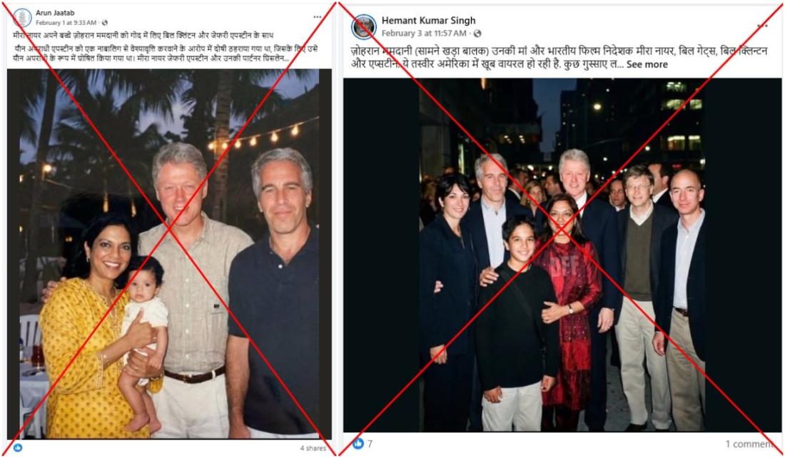 अमेरिकी न्याय विभाग द्वारा जनवरी 2026 में जेफ़री एपस्टीन की जांच से संबंधित नए दस्तावेज़ जारी किए जाने के बाद, सोशल मीडिया पर कुछ तस्वीरें इस गलत दावे से शेयर की गईं कि वे यौन अपराधी जेफ़री एपस्टीन और न्यूयॉर्क शहर के मेयर ज़ोहरान ममदानी तथा उनकी मां, फ़िल्म निर्माता मीरा नायर के बीच संबंध का सबूत हैं. हालांकि, एएफ़पी के विश्लेषण से पता चलता है कि ये तस्वीरें एआई से बनाई गई थीं और मूल रूप से एक पैरोडी सोशल मीडिया अकाउंट पर शेयर की गई थीं.