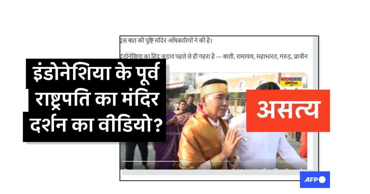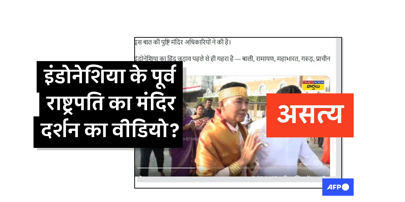 विदेशी नेताओं का दर्शन के लिए दक्षिण भारत के प्रसिद्ध तिरुपति-तिरुमला मंदिर में आना आम बात है. लेकिन भारतीय मीडिया द्वारा जनवरी 2026 में शेयर किया गया एक वीडियो इंडोनेशिया के पूर्व राष्ट्रपति जोको विडोडो को इस हिंदू मंदिर में नहीं दिखाता है. वीडियो में दिख रहा व्यक्ति वास्तव में एक इंडोनेशियाई हस्तरेखा विशेषज्ञ (पाम रीडर) है. नई दिल्ली स्थित इंडोनेशिया दूतावास ने भी स्पष्ट किया कि दक्षिण-पूर्व एशियाई देश के पूर्व राष्ट्रपति ने कभी भी इस मंदिर का दौरा नहीं किया है.