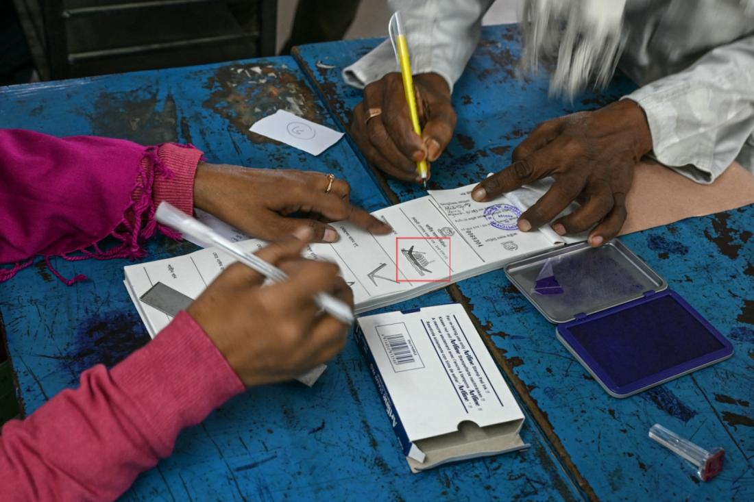 एएफ़पी के पास पिछले चुनाव की एक तस्वीर है, जिसमें मतपत्र पर नाव का चुनाव चिन्ह दिखाई दे रहा है.
