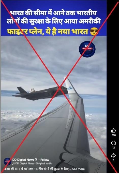 फ़ेसबुक पर 6 मार्च को शेयर की गई पोस्ट का कैप्शन है, "भारत की सीमा में आने तक भारतीयों की सुरक्षा के लिए आया अमरीकी फाइटर प्लेन". पोस्ट में "Israel Iran Conflict" और "Iran News" जैसे हैशटैग भी शामिल हैं.