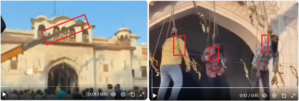 सोशल मीडिया पर एक वीडियो, जिसमें तीन लोग क्रेन से लटके दिख रहे हैं, शेयर कर दावा किया जा रहा है कि ये नेपाल में एक लड़की से बलात्कार करने के आरोपी तीन मुस्लिम व्यक्तियों को सार्वजनिक स्थल पर दी गयी फांसी दिखाता है. हालांकि, यह दावा गलत है. यह दृश्य असल में पंजाब में एक म्यूज़िक वीडियो की शूटिंग के दौरान फ़िल्माया गया था.