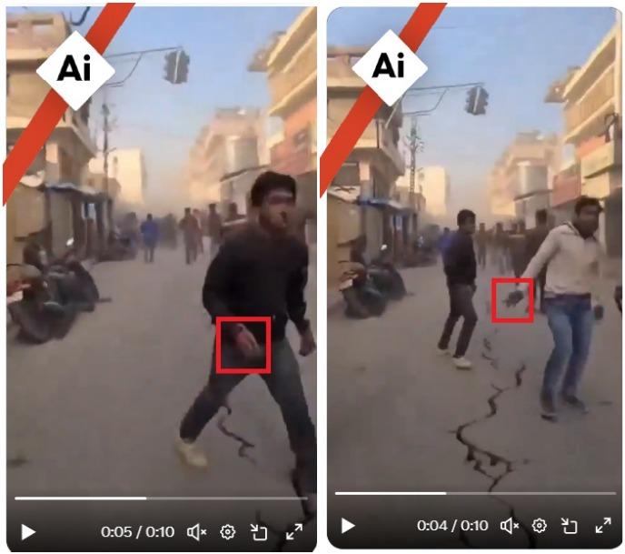 वीडियो को ध्यान से देखने पर कई दृश्यात्मक खामियां दिखती हैं जो एआई से बनाए गए कंटेंट की पहचान होती हैं.