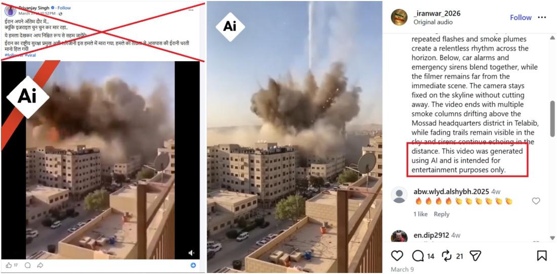 यह वीडियो एक ऐसे अकाउंट से पोस्ट किया गया था, जो नियमित रूप से मिडिल ईस्ट युद्ध से जुड़े एआई-जेनरेटेड वीडियो शेयर करता है.