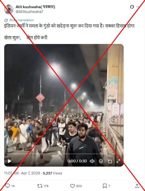 7 अप्रैल 2026 को शेयर किए गए X पोस्ट में कहा गया, "भारतीय सेना ने ममता बनर्जी के गुंडों को खदेड़ना शुरू कर दिया है."