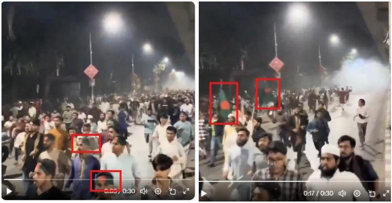ध्यान से देखने पर पता चलता है कि क्लिप में कुछ लोग बांग्लादेश का राष्ट्रीय ध्वज पकड़े हुए हैं या उसके निशान वाले हेडबैंड पहने हुए हैं.