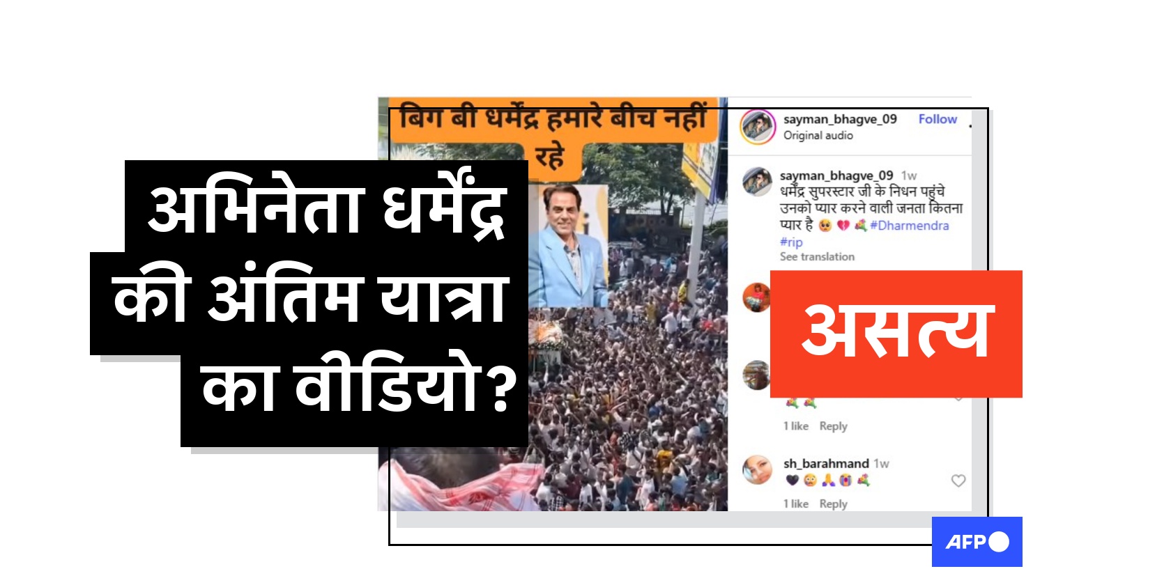 कॉपीराइट © AFP 2017-2025. सर्वाधिकार सुरक्षित. पाठक हमारी वेबसाइट का इस्तेमाल सिर्फ स्वयं, निजी और ग़ैर व्यावसायिक कार्यों के लिए कर सकते हैं. किसी भी व्यावसायिक इस्तेमाल जैसे की AFP वेबसाइट के कंटेंट की किसी भी रूप में बिना अनुमति व लाइसेंस प्रतिकृति अथवा वितरण करना सख्त मना है. AFP फ़ैक्ट चेक में जो दूसरे न्यूज़ वेबसाइट के लेख अथवा बाहरी जानकारी दी जाती है वो हमारे फ़ैक्ट चेक के सत्यापन के लिए महत्वपूर्ण और अनिवार्य है. AFP ने इन बाहरी लेखों के लेखक से थर्ड पार्टी कंटेंट से अधिकार नहीं लिया है और न ही उनकी कोई ज़िम्मेदारी लेते हैं. AFP और उसका प्रतीक चिन्ह रजिस्टर्ड ट्रेडमार्क हैं.