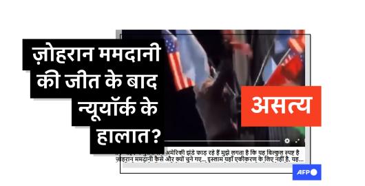 चित्र अमरीकी राजनीती प्रकाशित 28/11/2025 अमेरिकी झंडा हटाने का पुराना वीडियो न्यूयॉर्क के नए मेयर ज़ोहरान ममदानी से जोड़कर वायरल